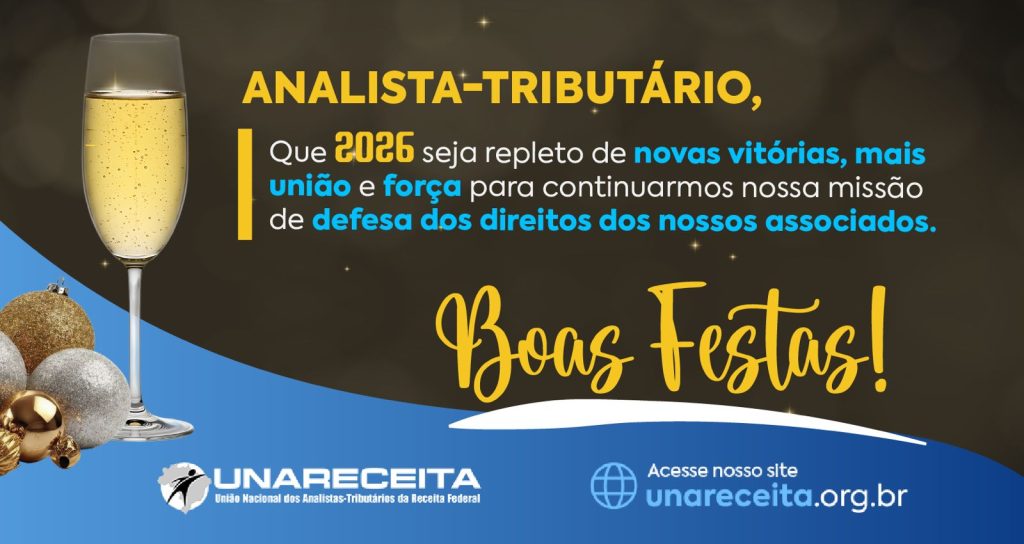 A UNARECEITA deseja a todos os Analistas-Tributários e suas famílias um excelente fim de ano e um 2026 de saúde, realizações e conquistas.